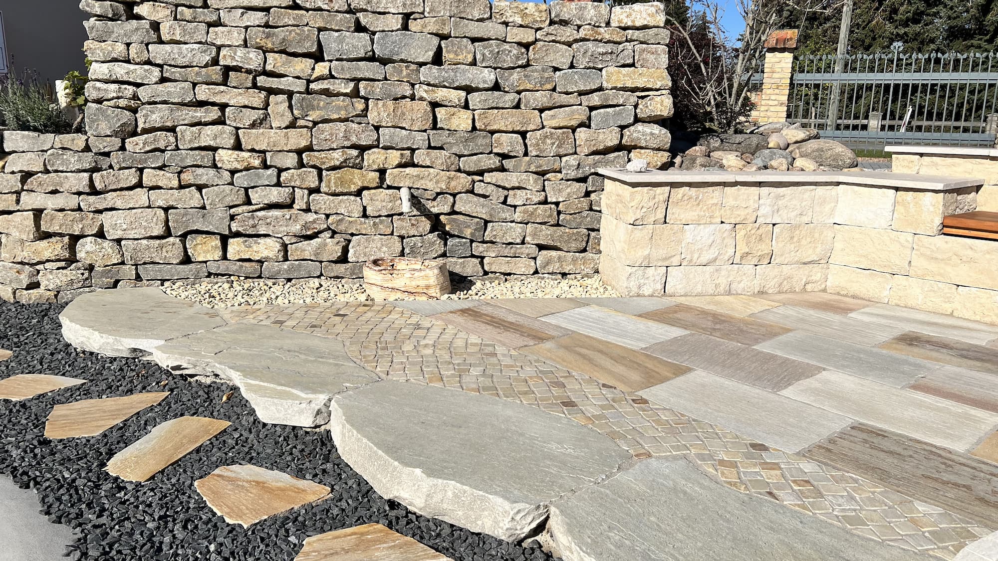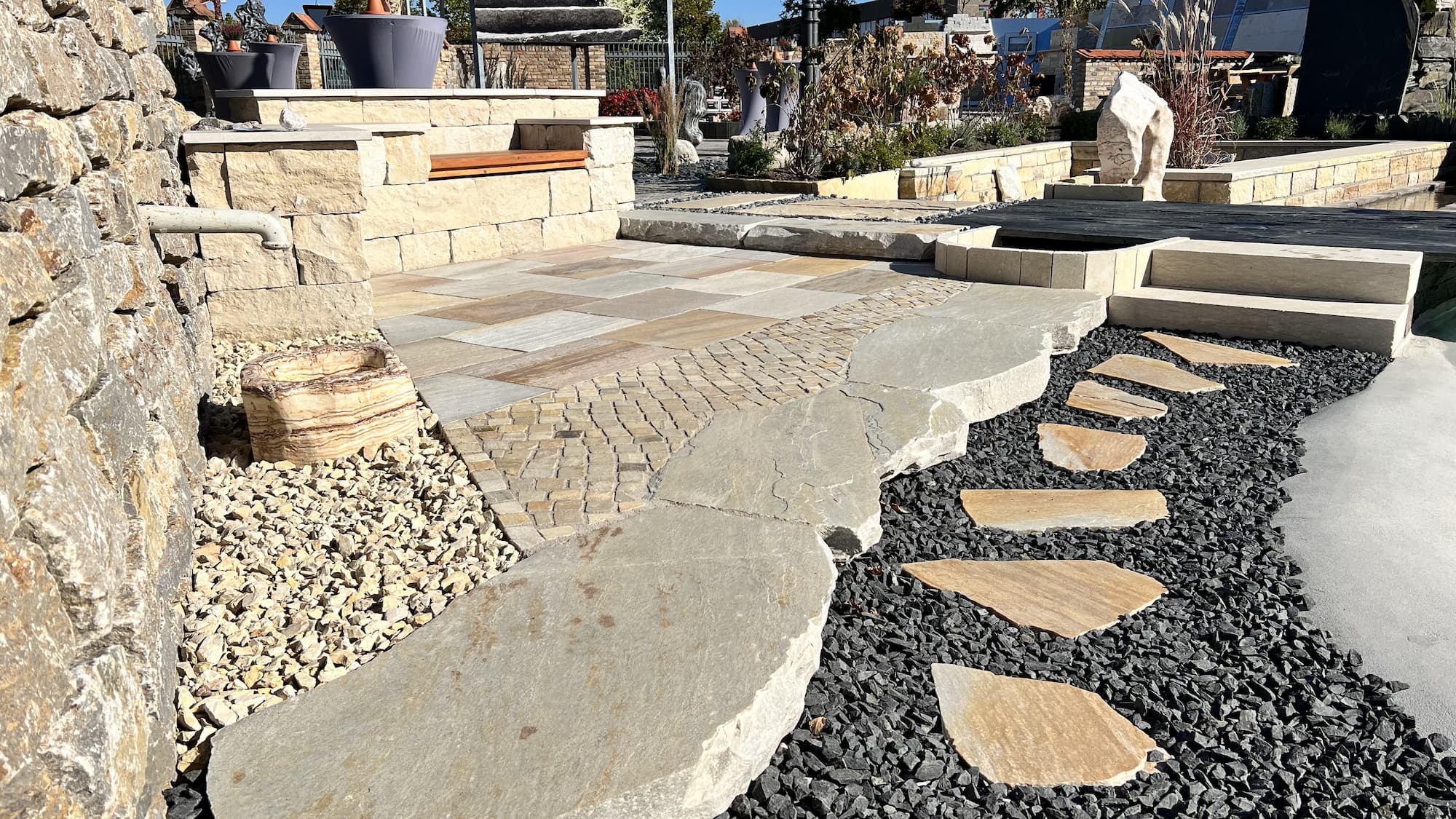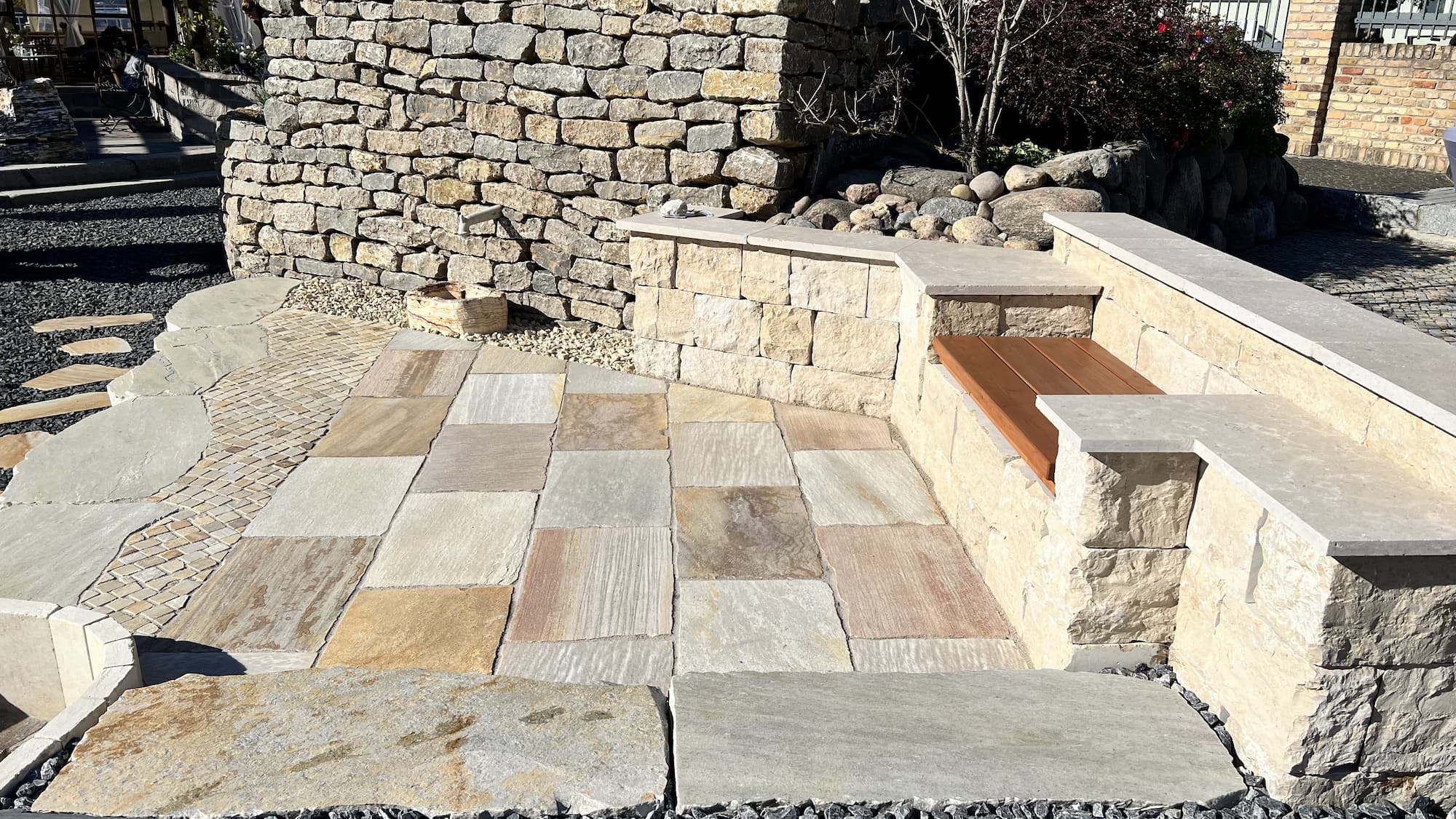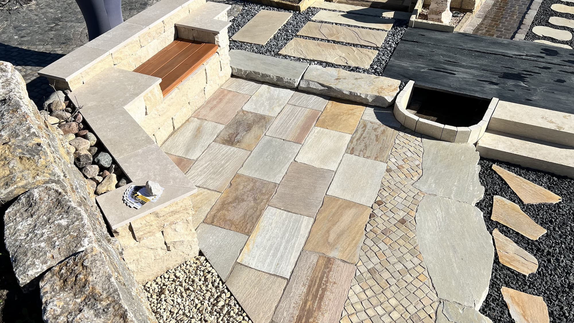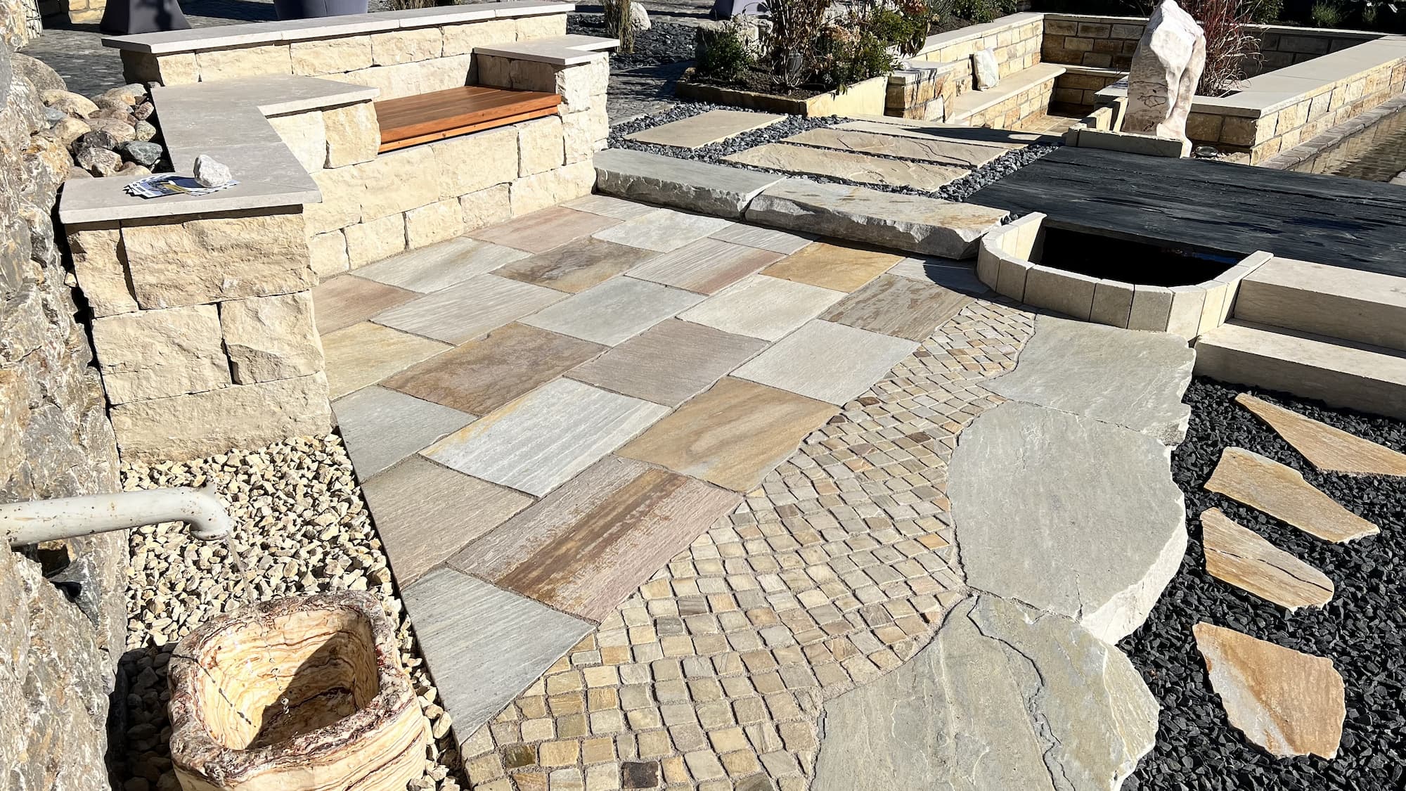 Abwechslungsreiches Terrassendesign mit Quarzit, Kalkstein und Muschelkalk: Natursteine stilvoll kombinieren